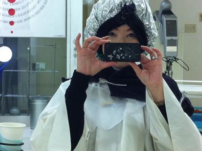 銀色のキャップをかぶり、、どちらかと言うと笑える姿ですが。。。