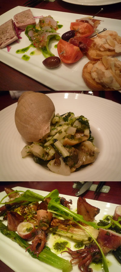 前菜盛り合わせ・巻貝のガーリック炒め・子持ちイカの何とか(笑)