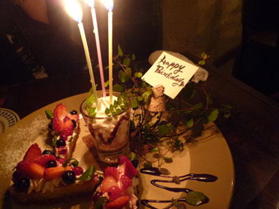 こちらでも^^マスターのご好意でお誕生日のケーキが!!