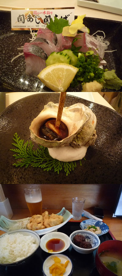 サザエは巨大なサザエだったので大味だったけど、関アジもとり天も美味しかった♪