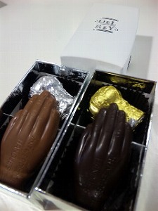 あ、ちなみに。。手の形のチョコレートの上の方にキラキラ光るものが置かれてるでしょ^^