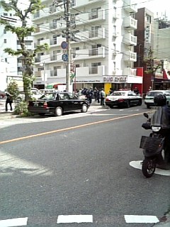 警官は7~8人、民間委託の駐車禁止切符を切る人2人、そして野次馬20名くらい。