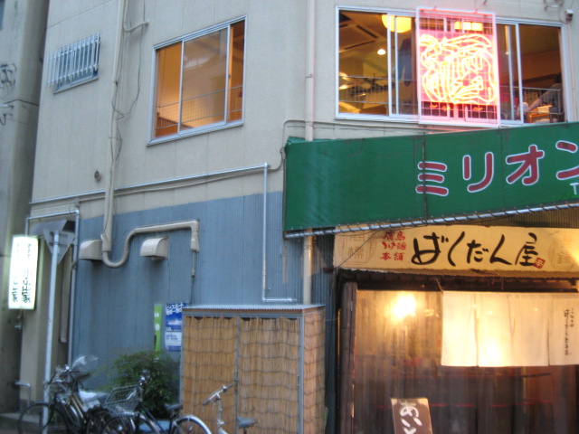 目印は一階がつけ麺のばくだんや、その二階で、夜になると『酒』という文字のネオンが光ります^^