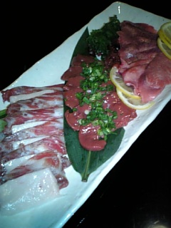 左から、馬刺し(タテガミ付き)・レバ刺・タン刺☆